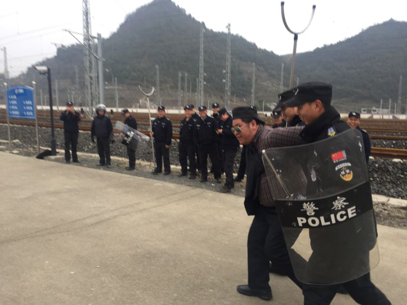 三、按照客戶單位《反恐怖主義法》宣傳教育活動周安排,于2016年12月21日14:00-16:00,由駐車輛段動車所保安隊開展反恐處突實(shí)作演練,共計26名駐車輛段動車所保安隊隊員參加演練,于2016年12月22日9:00-10:00,由駐車輛段、客運(yùn)段保安隊開展反恐處突實(shí)作演練,共計12名駐車輛段、客運(yùn)段保安隊隊員參加演練。本次演練以反恐怖主義法教育、反恐器材使用、反恐團(tuán)隊配合和應(yīng)對刀斧砍殺實(shí)作演練為主,有效提高了職工反恐應(yīng)急處置能力。