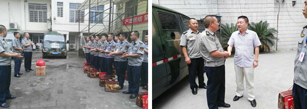 9月21日至24日,黔東南州分公司總經(jīng)理夏誠(chéng)豇帶隊(duì)對(duì)所屬16個(gè)守押中隊(duì)進(jìn)行節(jié)日慰問(wèn)和安全檢查,期間還向農(nóng)行等客戶(hù)單位領(lǐng)導(dǎo)表達(dá)謝意并帶去祝福。