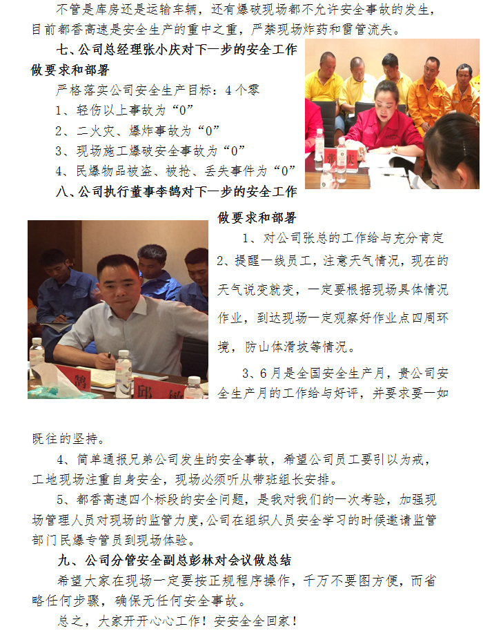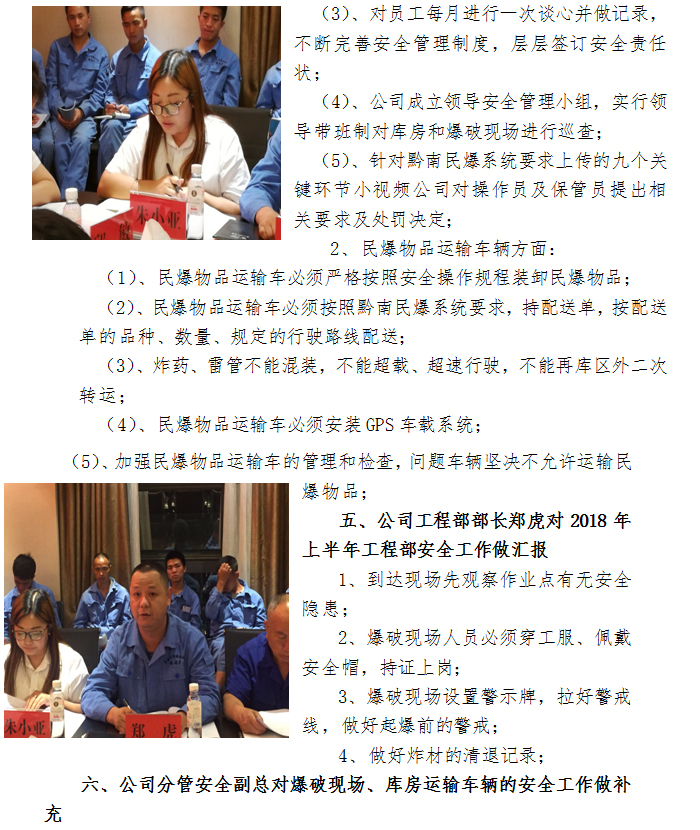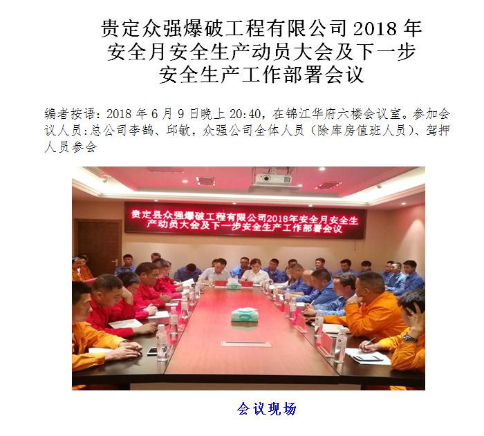 > 貴定眾強(qiáng)爆破工程有限公司2018年 安全月安全生產(chǎn)動員大會及下一步 安全生產(chǎn)工作部署會議