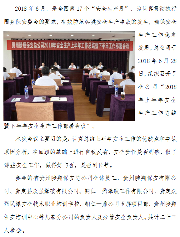 網(wǎng)站首頁(yè) > 新聞中心 > 公司新聞 > 2018年上半年安全生產(chǎn)工作總結(jié)暨 下半年安全生產(chǎn)工作部署會(huì)議