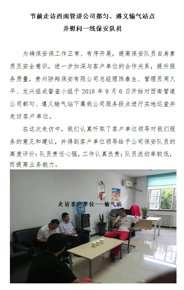 前走訪西南管道公司都勻、遵義輸氣站點(diǎn) 并慰問一線保安隊(duì)員